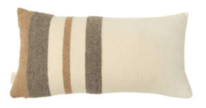 %100 doğal yünden el dokuması olarak üretilmiş bu dikdörtgen dekoratif yastık, beyaz, camel ve gri meta çizgileriyle dengeli ve modern bir görünüm sunar. Zamansız tasarımı sayesinde İskandinav ve doğal dekorasyon stilleriyle kolayca uyum sağlar.
