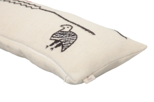 Kuş motifli, el nakışlı yün kırlent kılıfı. Etnik ve zarif tasarımıyla mekâna sıcak bir karakter kazandırır.