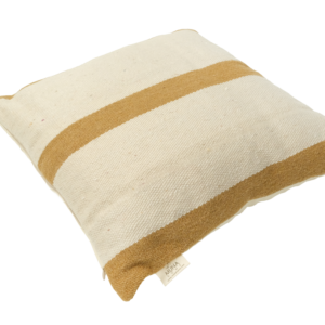 El dokuması doğal pamuktan üretilmiş, camel zemin üzerine bej çizgili dekoratif yastık kılıfı.
