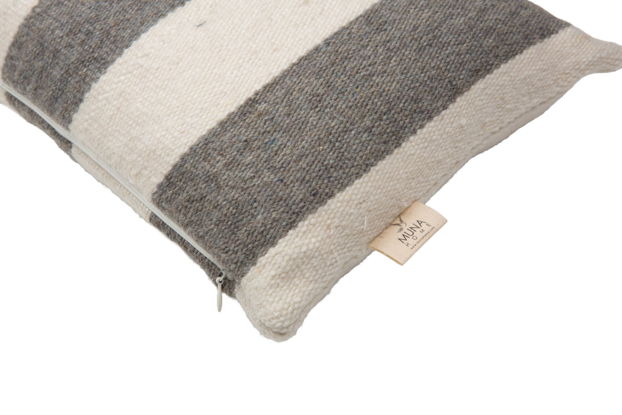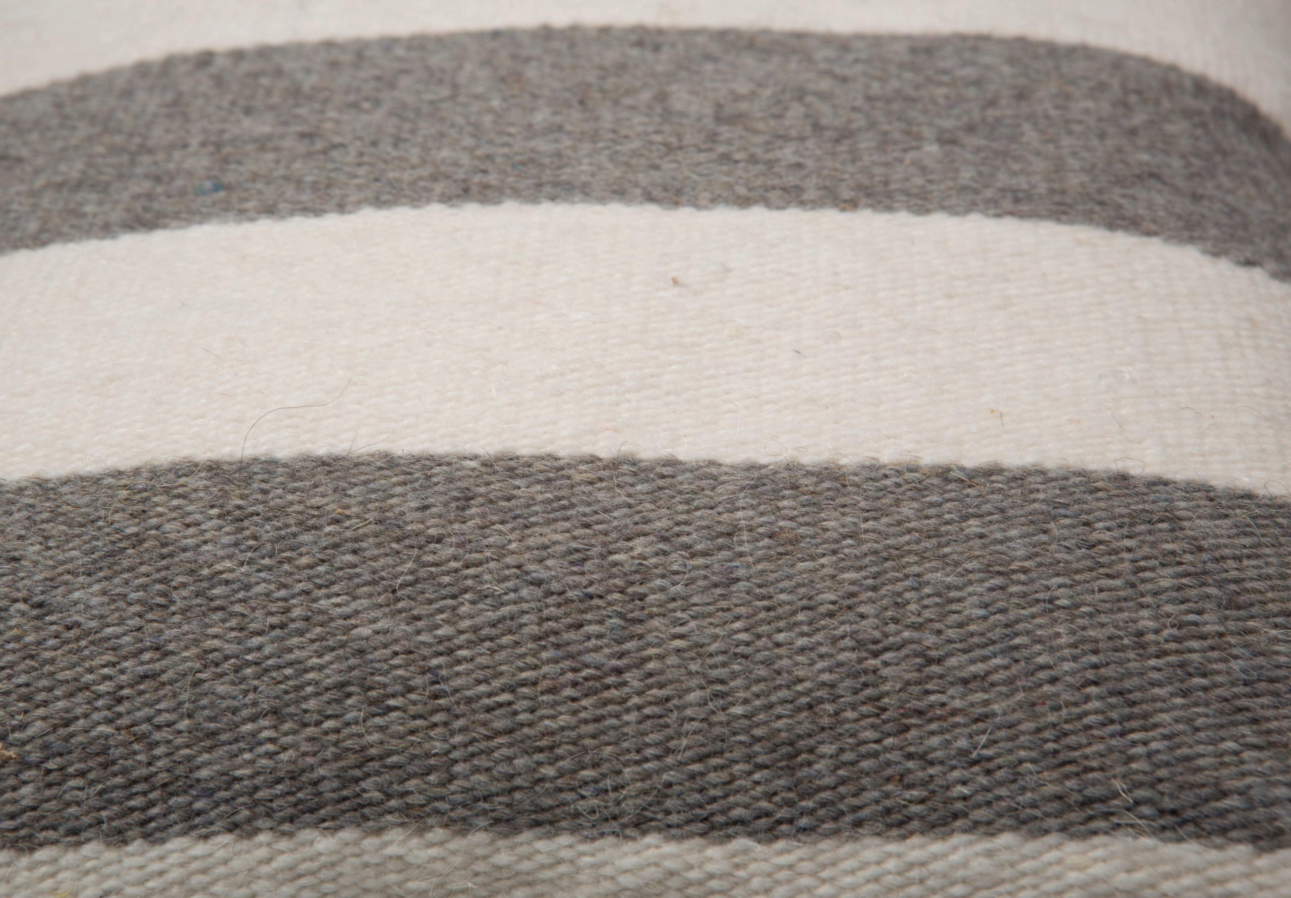 Canlı renkler size göre değilse ya da nötr tonları tercih ediyorsanız, yün dokular, ponpon detayları ve zamansız çizgilerle mekânınıza dengeli bir karakter katabilirsiniz. Çizgili dokuma, modern ve İskandinav esintili dekorasyonda sade ama güçlü bir ifade sunarken, gri ve beyazın uyumu ürüne zamansız ve zahmetsiz bir şıklık kazandırır.