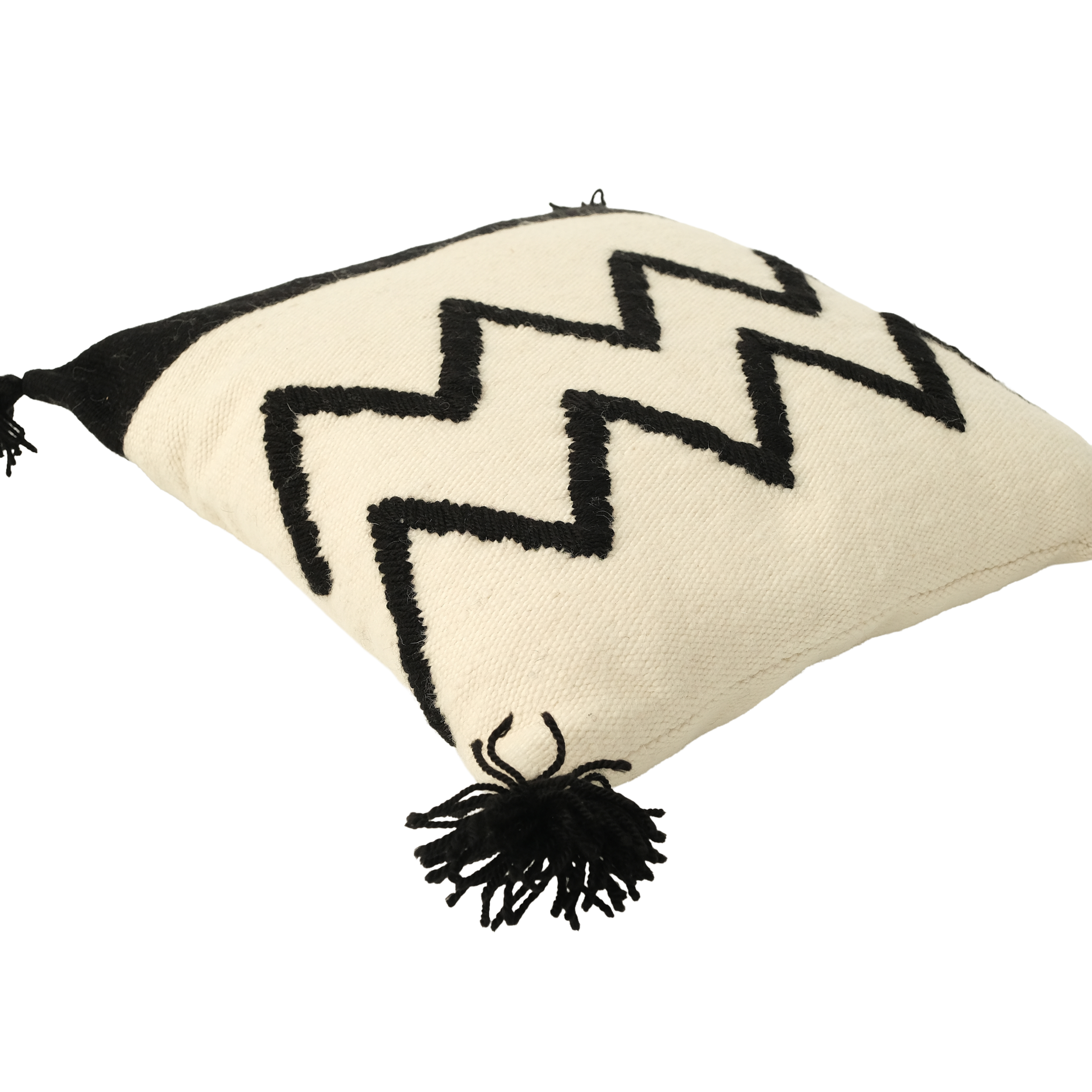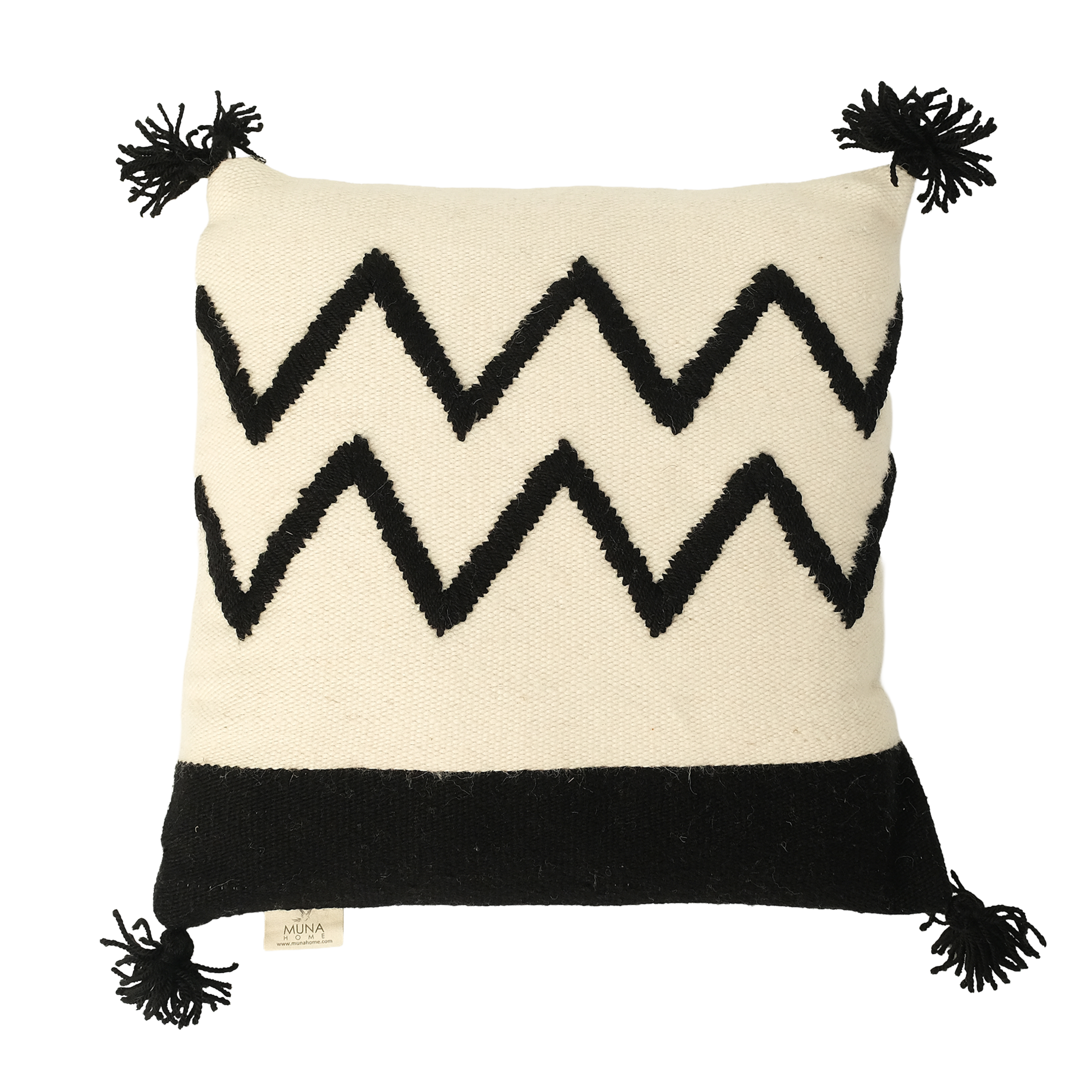 El Dokuması Yün Kare Yastık – Siyah Onde