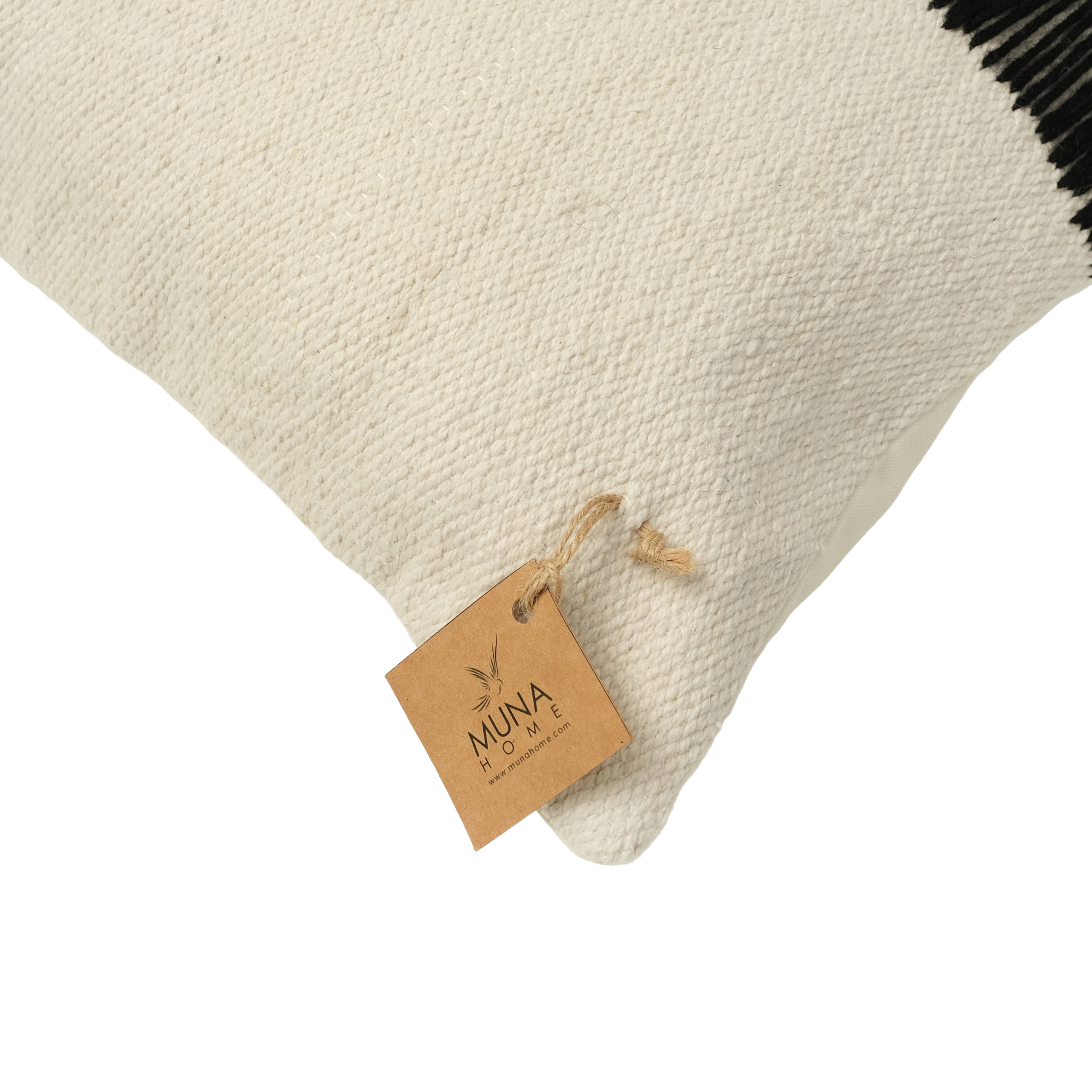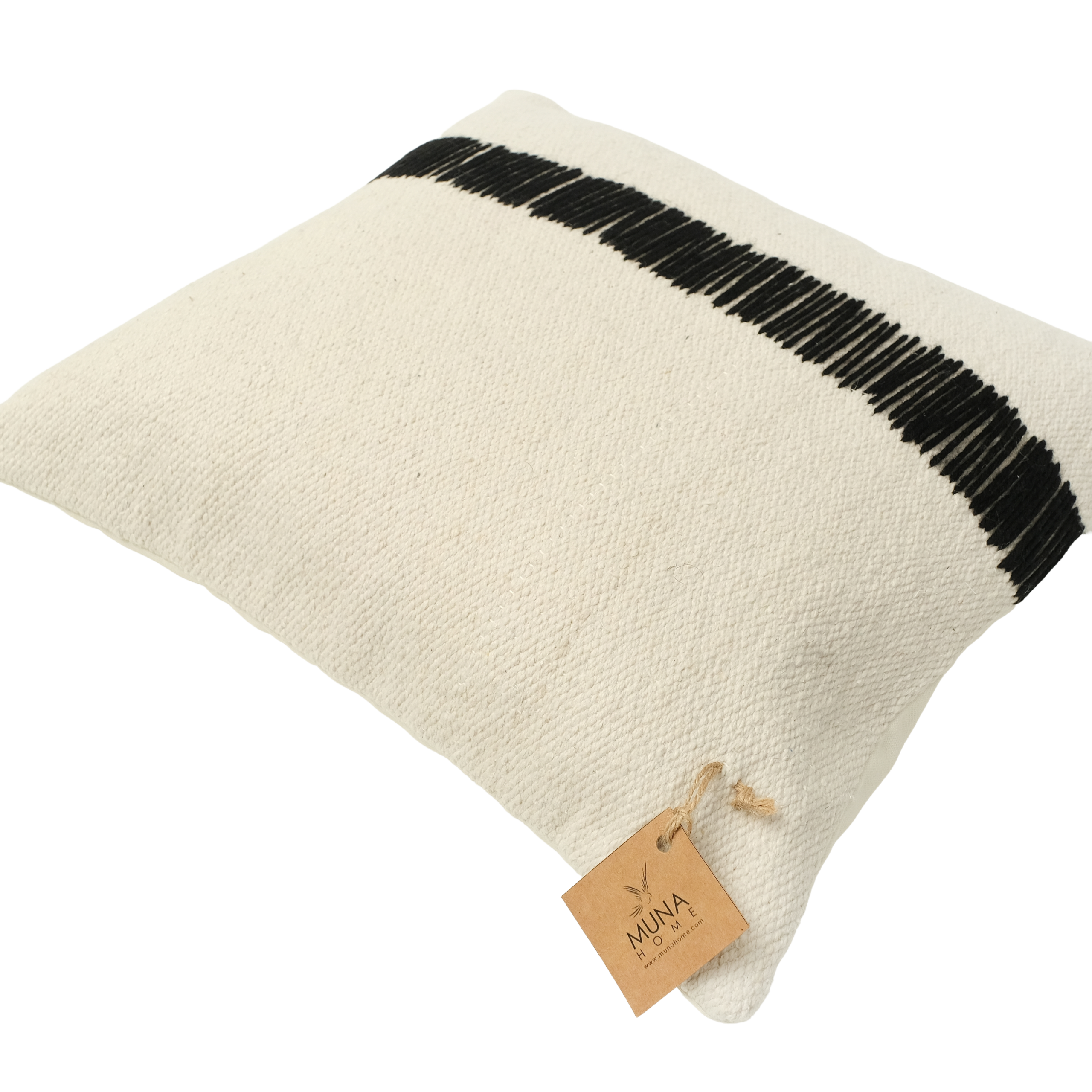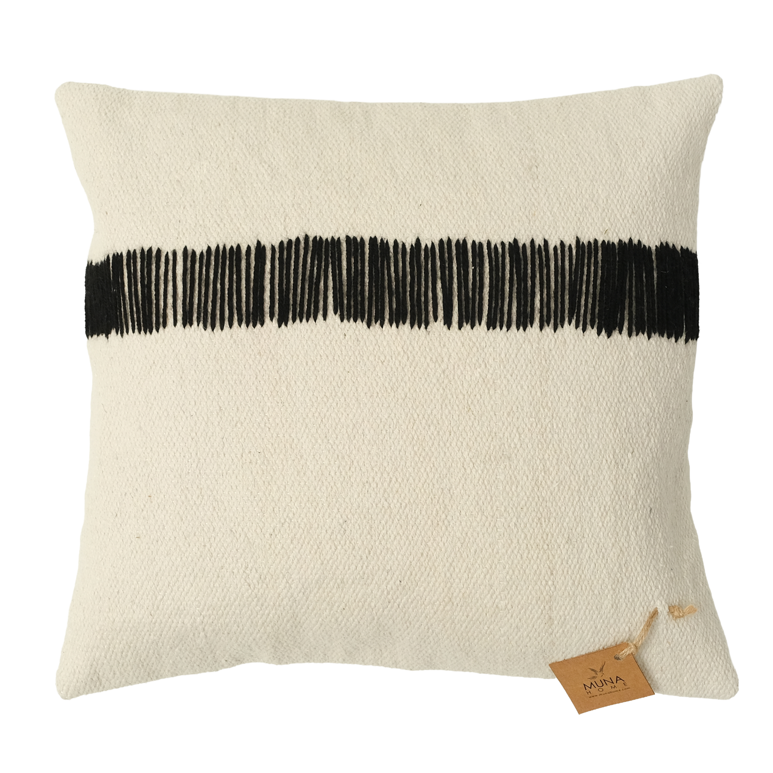El Dokuması Pamuk Kare Yastık – Black Stitches Square