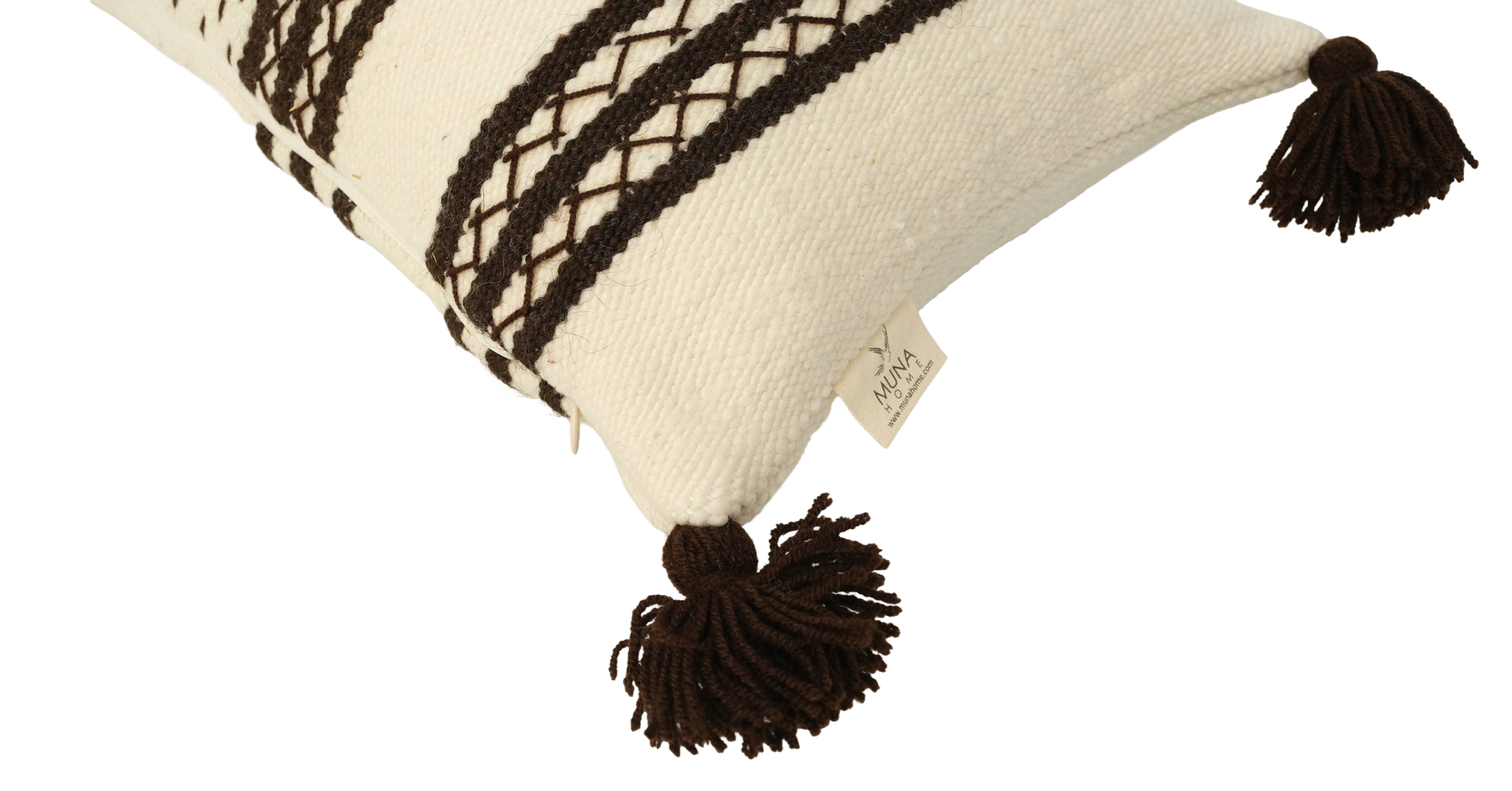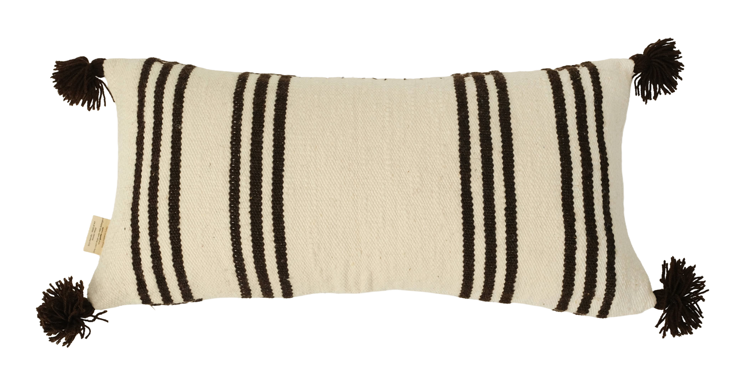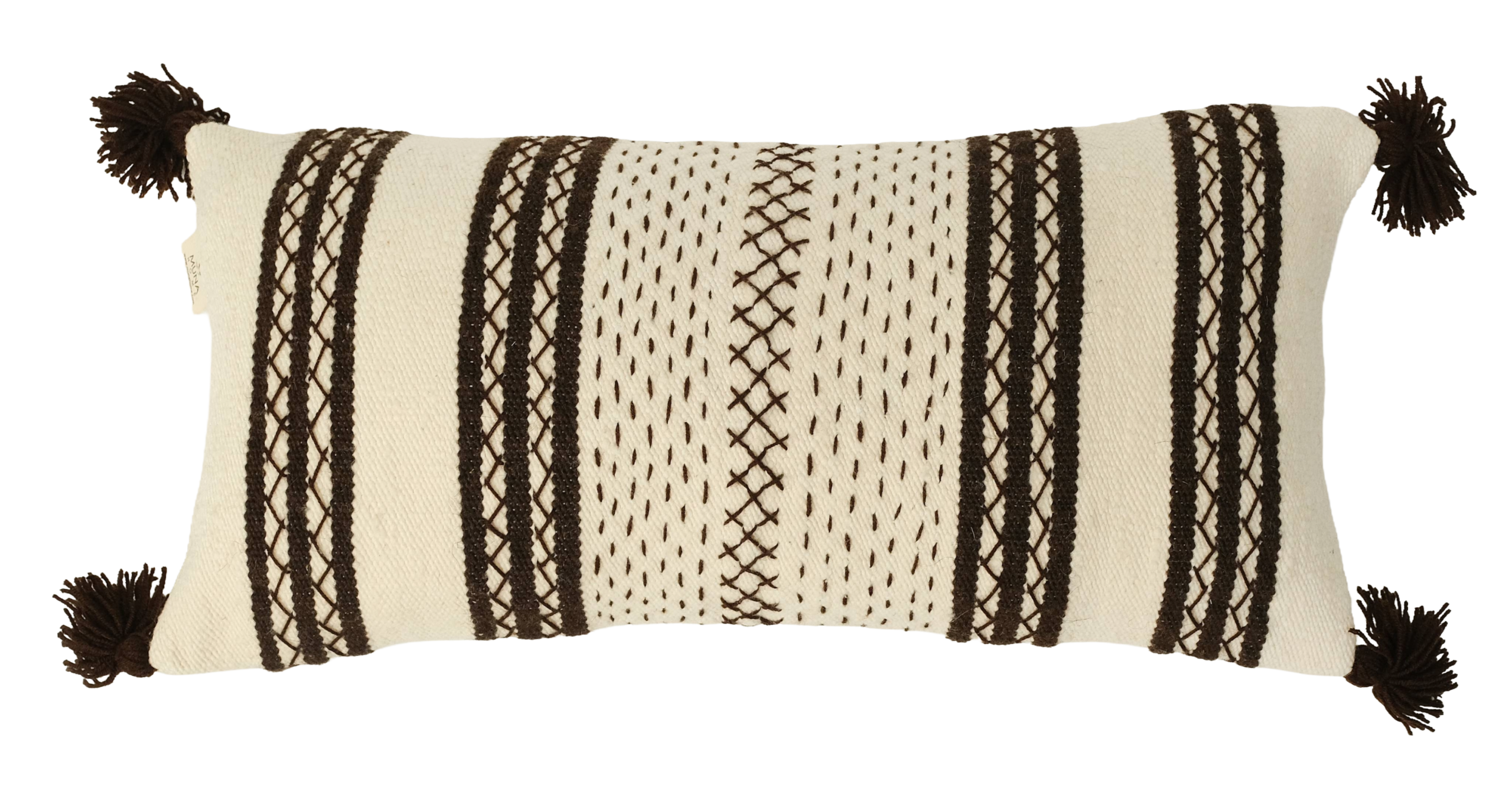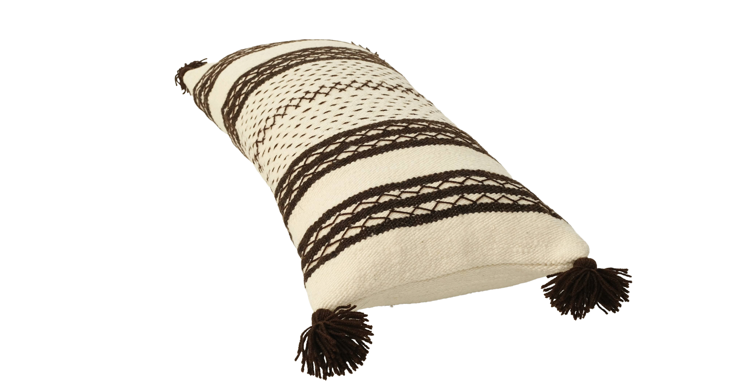 %100 doğal yünden el dokuması olarak üretilmiş bu dikdörtgen dekoratif yastık, toprak tonlarında alternanza ponpon detaylarıyla sıcak ve karakterli bir görünüm sunar. Doğal ve İskandinav tarzı dekorasyonlara kolayca uyum sağlar. Stoktan gönderilebilir veya sipariş üzerine üretilir.