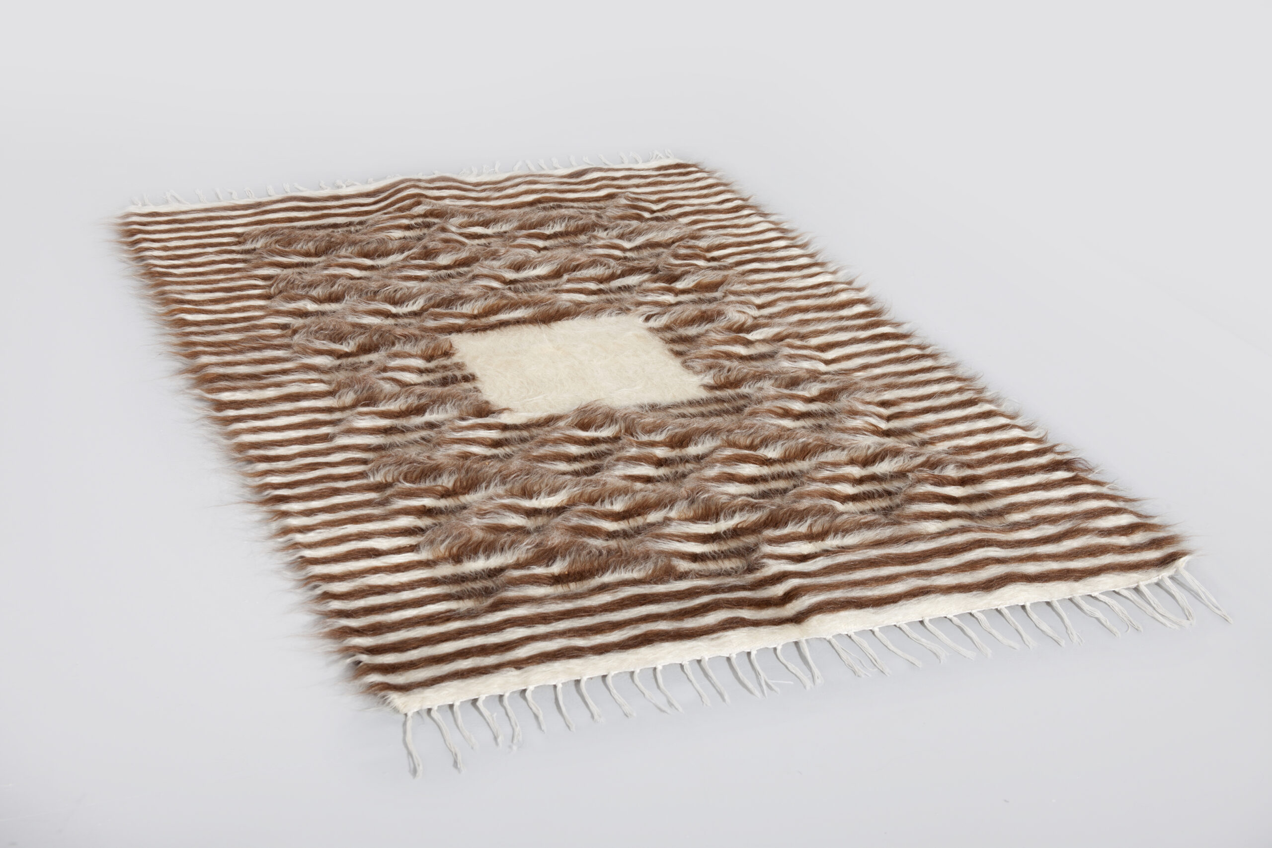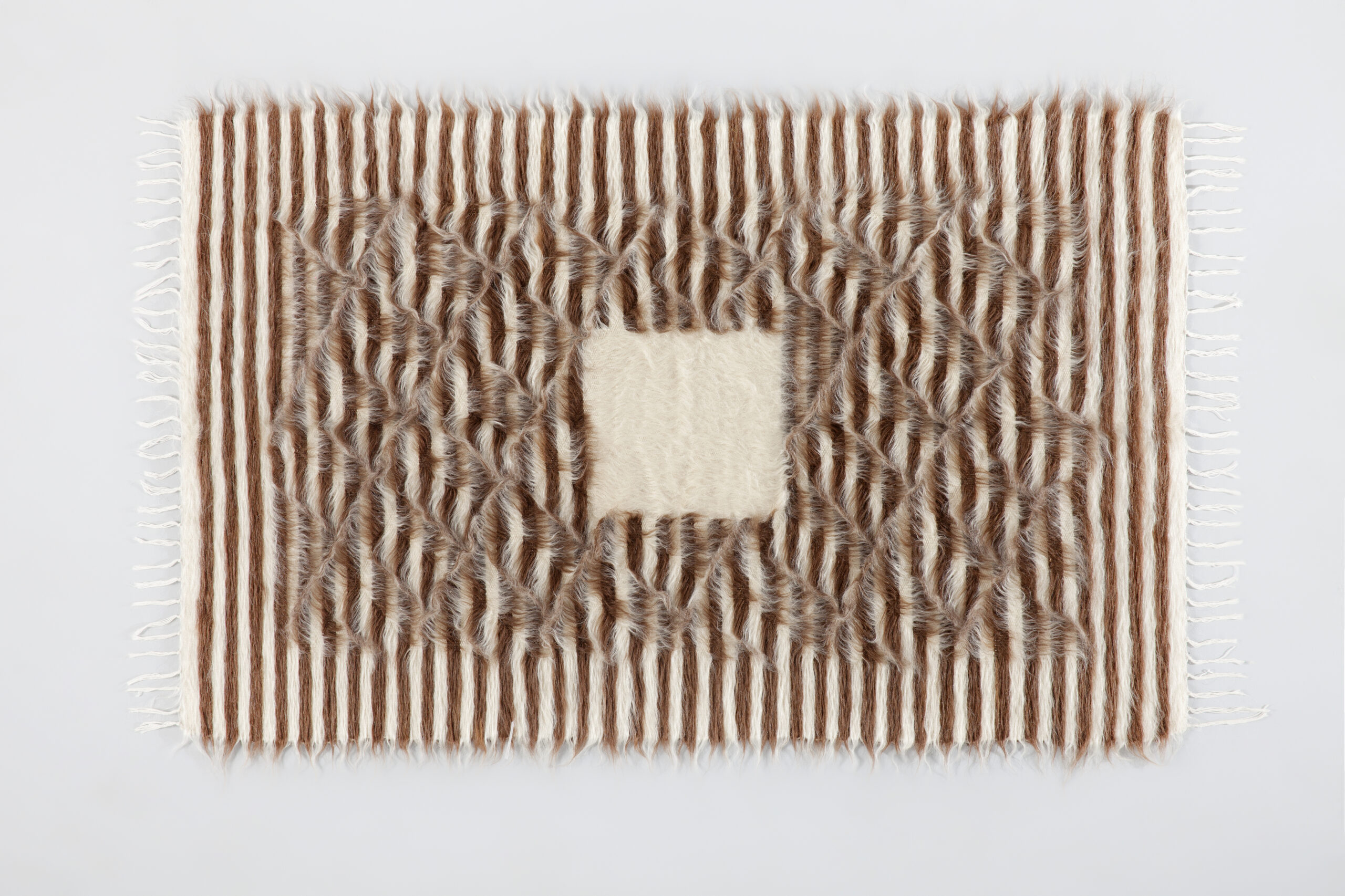 Mohair ve doğal yün karışımı kullanılarak üretilen el dokuması FINESTRA kilimlerimiz, Angora keçilerinden elde edilen elde eğrilmiş mohair ile seçilmiş doğal yünün bir araya gelmesiyle dokunur. Lifler boyasız bırakılır; desenin ritmi ve doğal tonların dengesi korunarak sade ve mimari bir görünüm elde edilir.