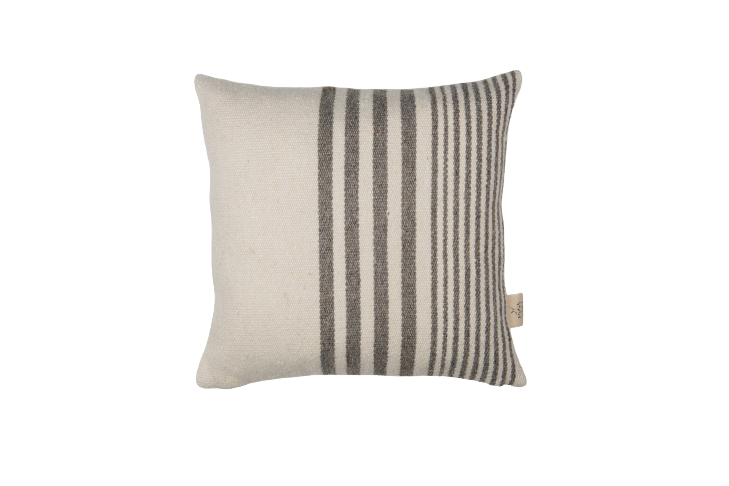 El dokuması Linee Fini Square kare yastık, doğal yün ve bambu karışımıyla üretilmiştir.