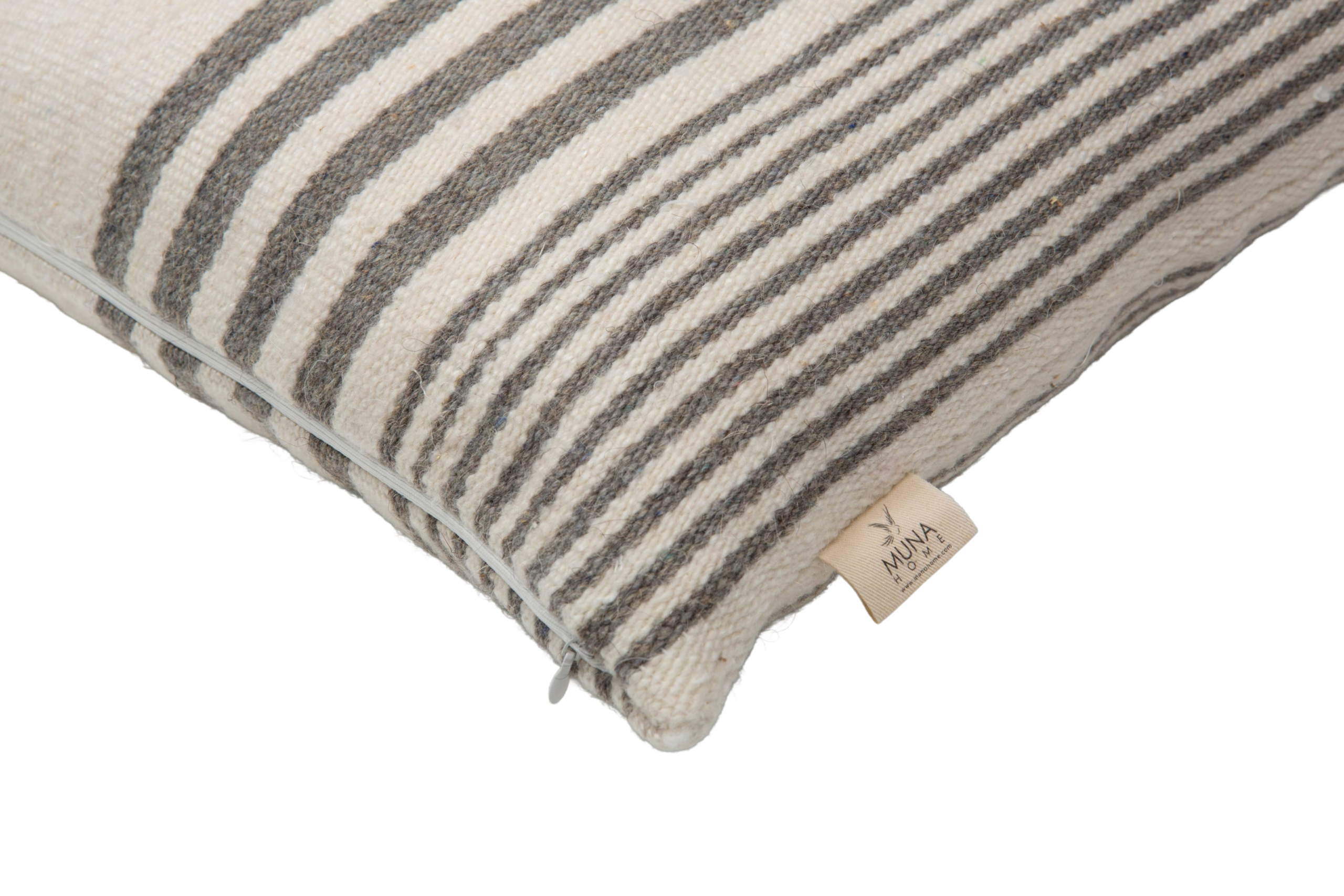 Canlı renkler sizi yoruyorsa ya da nötr tonları tercih ediyorsanız, yün dokular, zarif çizgiler ve doğal malzemelerle yaşam alanınıza karakter katabilirsiniz. İnce çizgili desenler modern ve İskandinav esintili dekorasyonda sade ama dengeli bir görünüm sunarken, gri ve beyazın uyumu ürüne zamansız ve zahmetsiz bir şıklık kazandırır.
