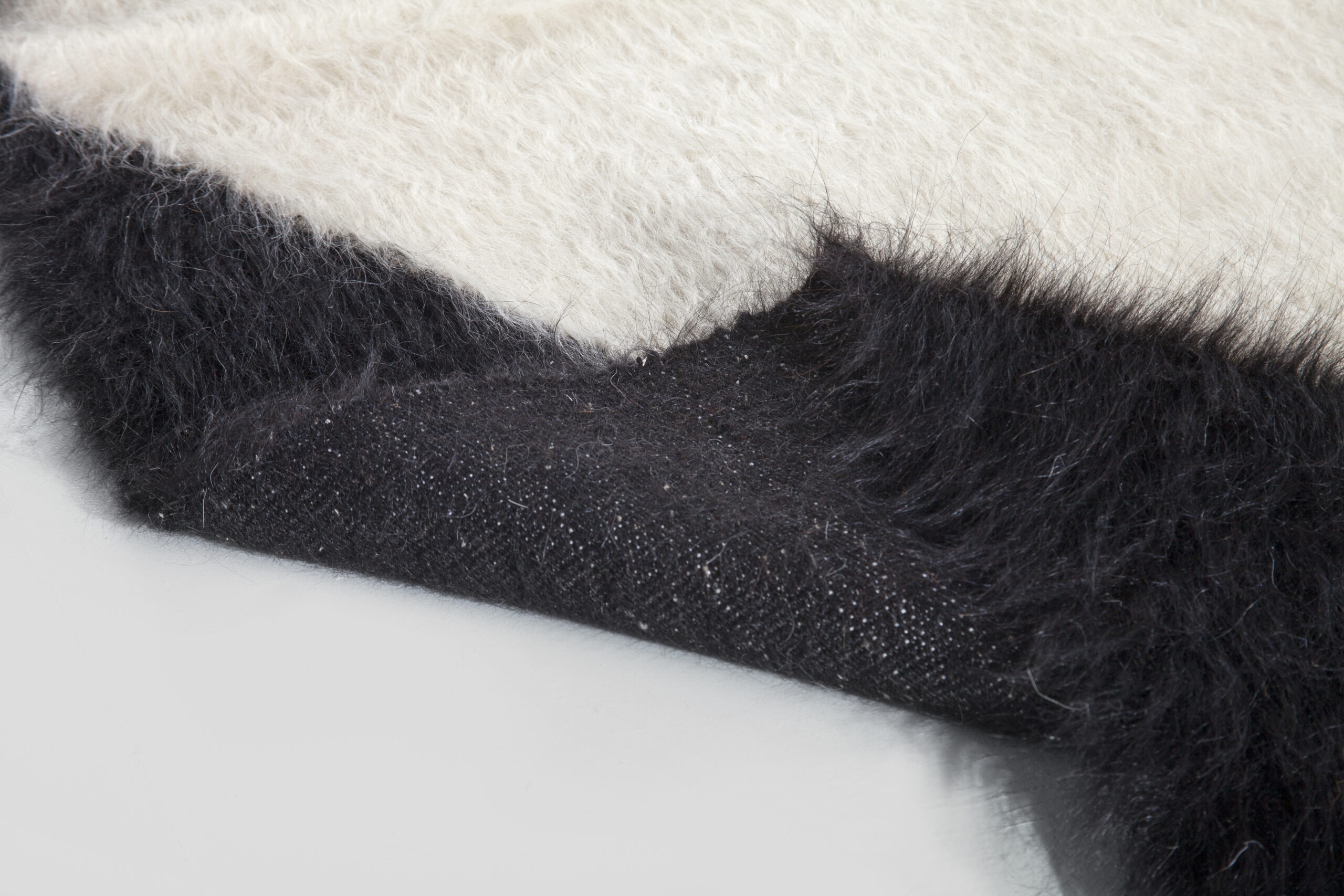Mohair ve doğal yün karışımı kullanılarak üretilen Obliqui kilim, Angora keçilerinden elde edilen elde eğrilmiş mohair ile seçilmiş doğal yünün birlikte dokunmasıyla hazırlanır. Lifler boyasız bırakılarak diyagonal çizgilerin hareketi ve yüzey dokusunun doğal karakteri korunur.