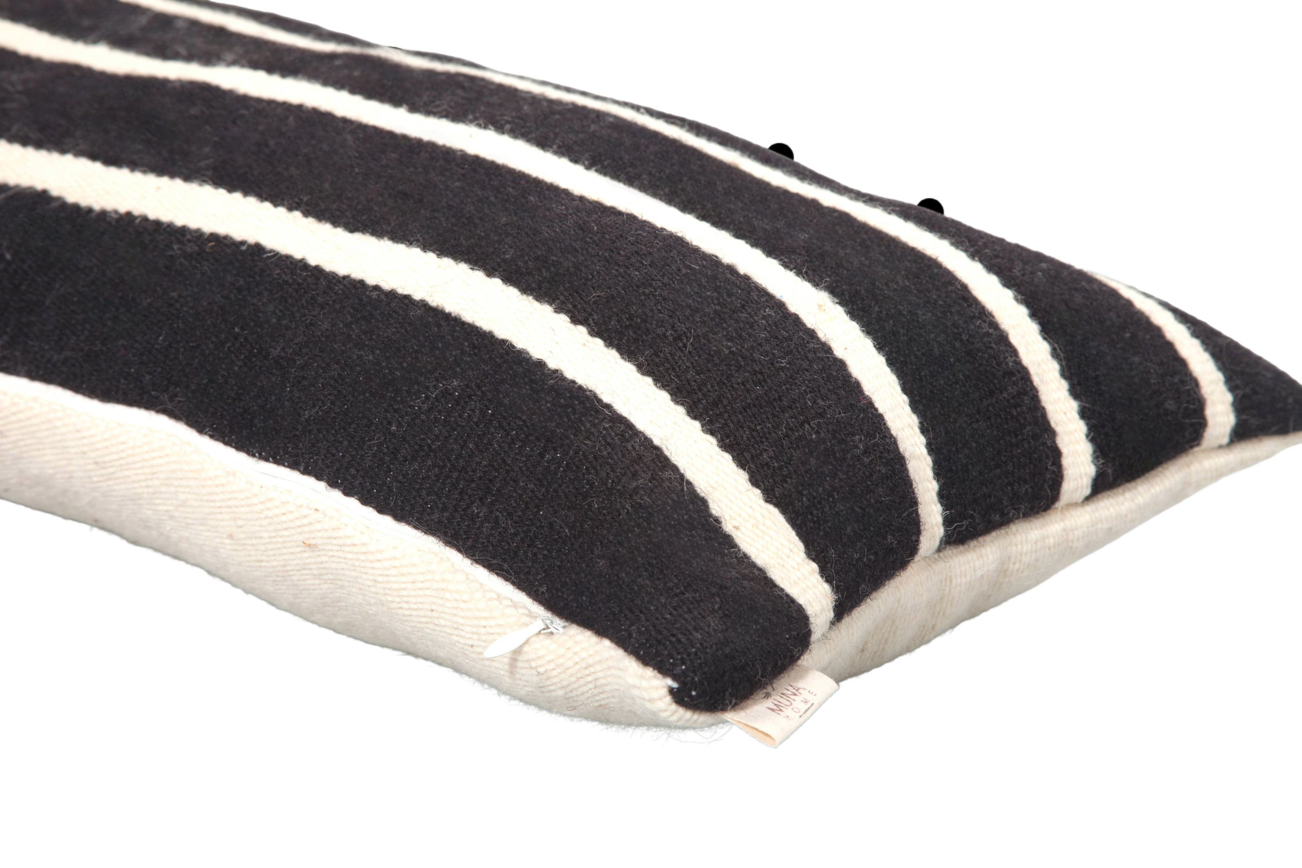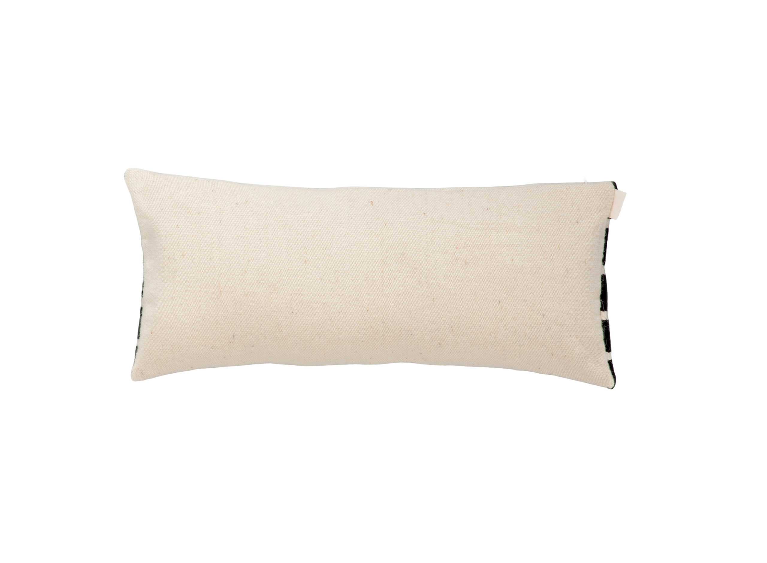 Hand-woven and hand-embroidered rectangular cushion cover.