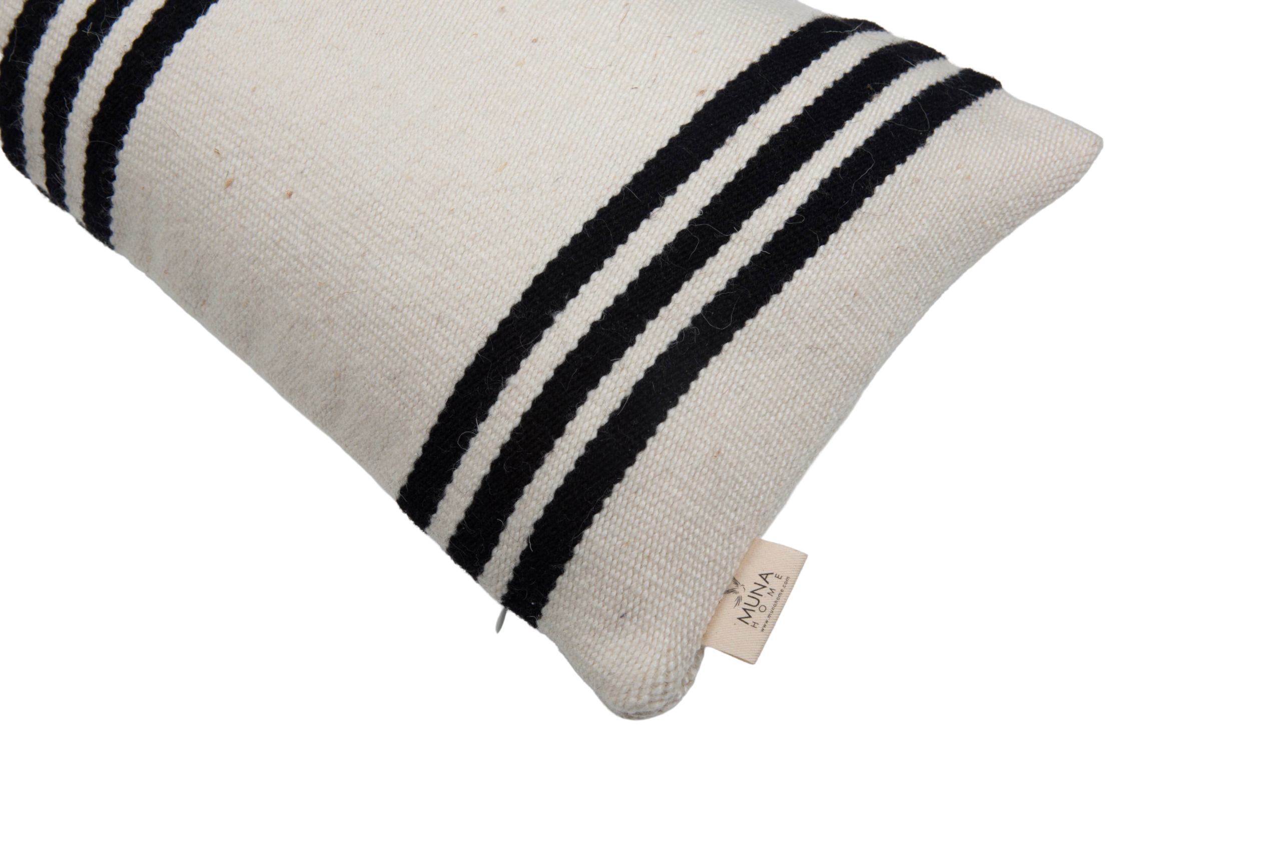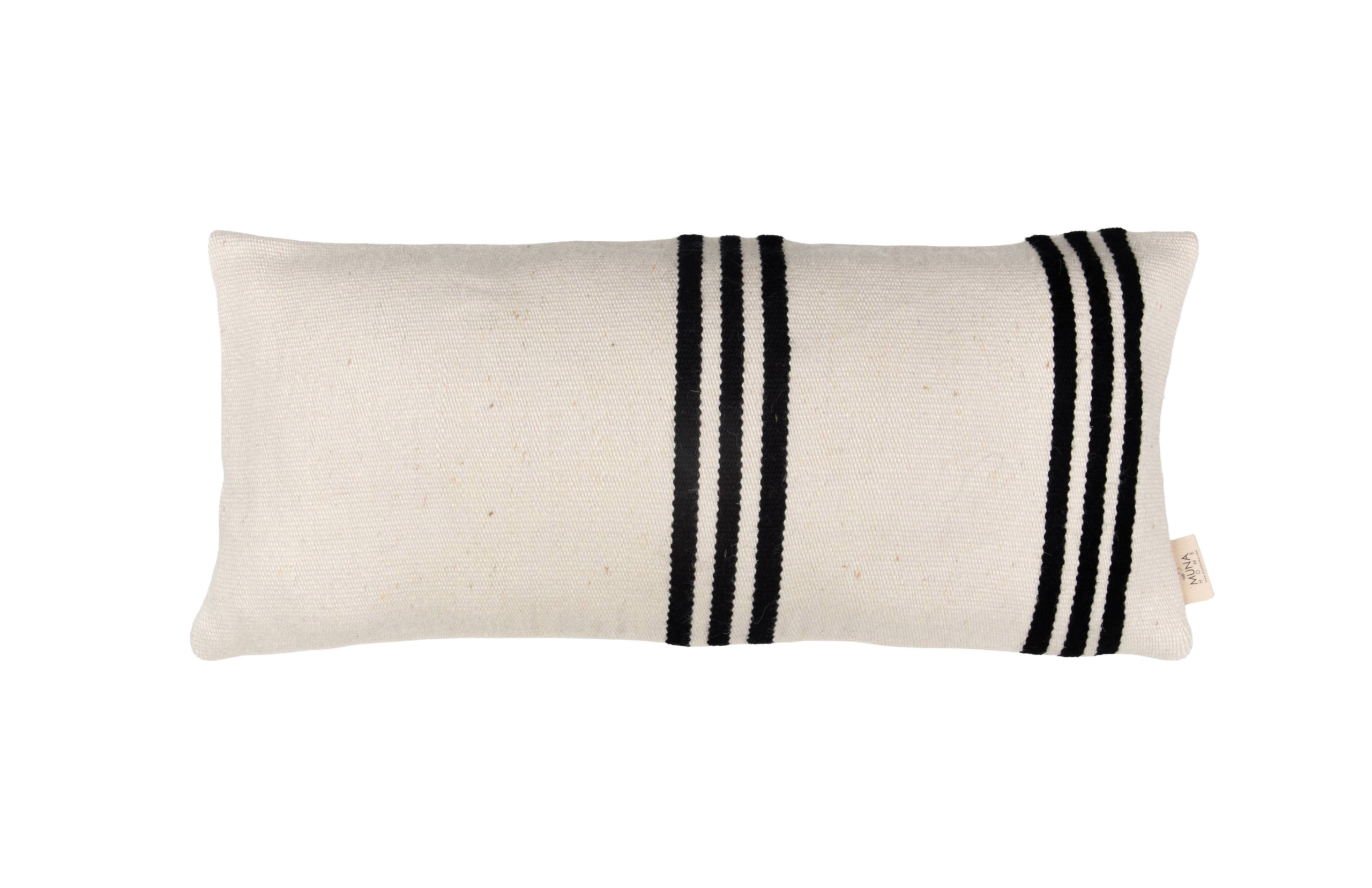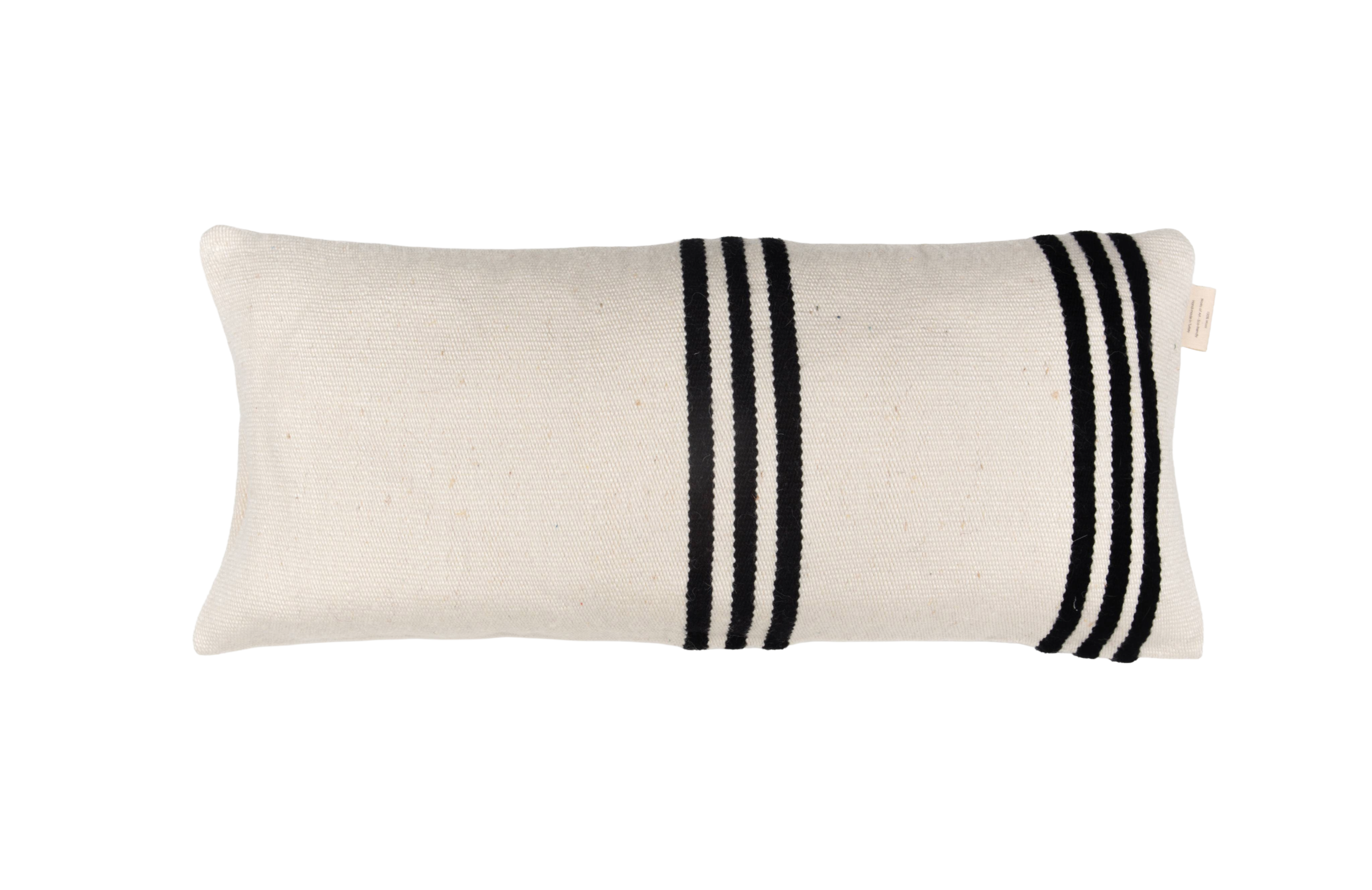 Doğal yün ve bambu karışımından el dokuması olarak üretilmiş bu dikdörtgen dekoratif yastık, Tripla Linea tasarımıyla sade, dengeli ve zamansız bir estetik sunar. İskandinav, modern ve doğal dekorasyon stilleriyle uyum sağlar.